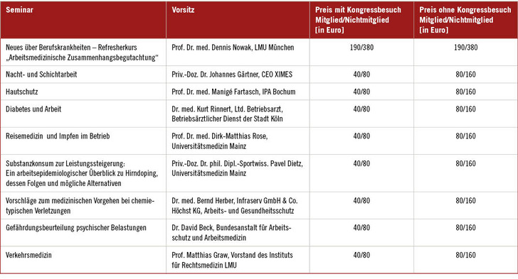 „Arbeitsmedizin in Deutschland, Österreich und der Schweiz“ ist eines der Schwerpunktthemen der DGAUM 2020. Weitere Schwerpunkte sind „Kanzerogene Stoffe und Faktoren“ sowie „5 Jahre Präventionsgesetz“. In Kooperation mit der ÖGA und der SGARM veranstaltet die DGAUM ein gemeinsames Symposium zum Thema „Arbeitsmedizin in Deutschland, Österreich und der Schweiz“. Darüber hinaus ist eine wissenschaftliche Veranstaltung mit der Bundesanstalt für Arbeitsschutz und Arbeitsmedizin (BAuA) zum Thema „Bioaerosole“ geplant. Zum Thema „Präventionsgesetz“ wird es eine gemeinsame Veranstaltung mit dem Krankenversicherungsunternehmen BARMER geben. Seit 2017 führt die DGAUM in Kooperation mit der BARMER das Modellvorhaben „Gesund arbeiten in Thüringen“ durch. Ziel des Projekts ist es, für Beschäftigte und Betriebe sowohl eine flächendeckende und nachhaltige arbeitsmedizinische Versorgung zu sichern, als auch neue Präventionspfade und Versorgungswege nach dem Präventionsgesetz zu entwickeln. Wie in den Jahren zuvor veranstaltet die Deutsche Gesetzliche Unfallversicherung (DGUV) ein arbeitsmedizinisches Kolloquium, dieses Mal zum Thema „Berufsdermatologie“. Für die Förderung des akademischen Nachwuchses bietet die DGAUM wieder ein Symposium für Promovierende bzw. ein Symposium für Studierende an. Im Rahmen der Poster-Ausstellung werden zudem die besten drei Arbeiten ausgezeichnet. Neben dem wissenschaftlichen Programm werden zahlreiche Betriebsbegehungen (u. a. BMW, Bayerische Berufspolizei, Berufsfeuerwehr München sowie Stadtwerke München), ein Get-Together sowie ein Gesellschaftsabend angeboten.