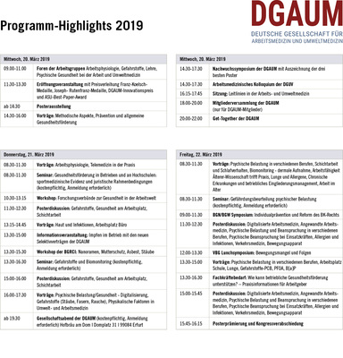 Vor dem Hintergrund des Modellvorhabens nach § 20g SGB Vvon DGAUM und BARMER „Gesund arbeiten in Thüringen“ wollen wir gerade im Rahmen unserer 59. Wissenschaftlichen Jahrestagung, die erstmals in Erfurt stattfinden wird, Möglichkeiten und Grenzen des Präventionsgesetzes im Feld der betrieblichen Prävention und Gesundheitsförderung vor dem Hintergrund der zunehmenden Digitalisierung aller Lebensbereiche eingehender reflektieren. Mit den Themenschwerpunkten setzen wir auch wieder einige wichtige Akzente, weit über den „klassischen“ Arbeitsschutz hinaus: