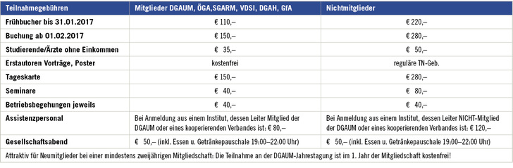 Detailinformationen zum Programm der DGAUM-Jahrestagung 2017 sowie zur Anmeldung online unter: