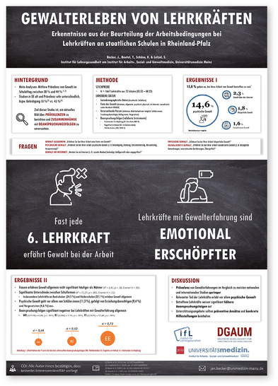Poster: „Gewalterleben von Lehrkräften: Erkenntnisse aus der Beurteilung der Arbeitsbedingungen bei Lehrkräften an staatlichen Schulen in Rheinland-Pfalz“