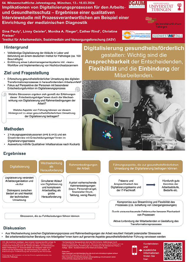 Poster: „Implikationen von Digitalisierungsprozessen in der medizinischen Diagnostik für den Arbeits- und Gesundheitsschutz – Ergebnisse einer qualitativen Interviewstudie mit Führungskräften“