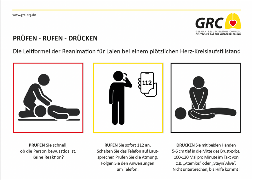 „Die 112 steht seit sieben Jahrzehnten für schnelle Hilfe, professionelle Rettung und verlässliche medizinische Versorgung. Bei einem Herz-Kreislaufstillstand ist die sofortige Herzdruckmassage lebensrettend. Durch die Anleitung am Telefon wird wertvolle Zeit bis zum Eintreffen des Rettungsdienstes – im Mittel neun Minuten – effektiv genutzt, um den Sauerstofffluss zum Gehirn aufrechtzuerhalten und irreversible Schäden zu verhindern“, erklärt Professor Bernd Böttiger, Vorstandsvorsitzender des Deutschen Rates für Wiederbelebung (GRC) und Bundesarzt des Deutschen Roten Kreuzes (DRK).