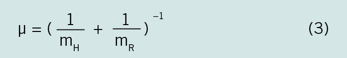 wobei vrel die relative Geschwindigkeit zwischen Roboter und Körperregion, also v(t), und µ die reduzierten Massen darstellt. Nach Anhang A der ISO/TS 15066 ist µ folgendermaßen definiert: