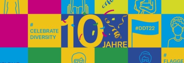 In diesem Jahr steht der DDT22 unter dem Motto „Let’s Celebrate Diver-sity“: Der Charta der Vielfalt e. V. ruft alle Teilnehmenden dazu auf, auf Fortschritte der letzten zehn Jahre zurückzublicken und Erfolge gemein-sam zu feiern. „Zusammen mit unseren Mitgliedern und Unterzeichner_innen haben wir Großes erreicht: Wir haben ein breites Bewusstsein für Vielfalt geschaffen. Auch deshalb führt an Diversity Management in der Arbeitswelt heute kein Weg mehr vorbei. Das zahlt sich aus: vielfältige Mitarbeitendennetzwerke, deutlich mehr Frauen in Vorständen, die neue Vielfaltsdimension soziale Herkunft. Und auch für dringende Herausforderungen wie den Fachkräftemangel bietet Diversity Management Lösungen“, sagt Ana-Cristina Grohnert, Vorstandvorsitzende des Charta der Vielfalt e. V. „Zugleich ist völlig klar: Es gibt noch viel zu tun! Lassen Sie uns die aktuelle positive Bewegung nutzen und jetzt noch stärker ins Handeln kommen. Der DDT ist ein Anstoß dafür! Deshalb ist es so wichtig, dass auch dieses Jahr wieder möglichst viele Organisationen deutschlandweit #FlaggeFürVielfalt zeigen.“