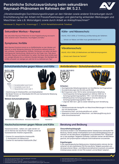 Der zweite Beitrag beschreibt die Folgen vibrationsbedingter Durchblutungsstörungen der Hände und stellt Schutzmaßnahmen, insbesondere die persönliche Schutzausrüstung (PSA), vor.
