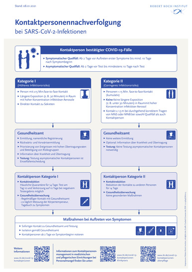 RKI, Robert Koch-Institut: SARS-CoV-2 Steckbrief zur Coronavirus-Krankheit-2019 (COVID-19): Update 08.01.2021. https://www.rki.de/DE/Content/InfAZ/N/Neuartiges_Coronavirus/Steckbrief.html (Zugriff 10.01.2021).
