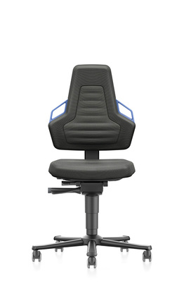 Neben arbeitsergonomischen Eigenschaften und prozessorientierter Einsatzeignung verlangt die Industrie von einem Arbeitsstuhl vor allem Eines: bedingungslose Robustheit. Ob Funkenflug, Späne, Öl oder extreme mechanische Einflüsse – Nexxit zeichnet sich durch höchste Widerstandsfähigkeit aus. Die Verbindung zwischen Rückenelement und Sitz besteht aus unverwüstlichem Stahl, genau wie das Fußkreuz. Auch die Ansprüche an das Polstermaterial sind im industriellen Umfeld hoch: Nexxit bietet mit seiner Auswahl an hochwertigen Bezugsstoffen für jeden Einsatzbereich die perfekte Option. Die Funktionsgriffe an der Rückenlehne verleihen dem Nexxit praktische Mobilität. So kann der Arbeitsstuhl schnell von A nach B befördert und die Polster beim Transport zusätzlich geschont werden. Die Griffe stehen dabei nicht nur für ein einfaches Handling. Als zentrales Gestaltungselement strahlen sie ein hohes Maß an Wertigkeit aus und sind in vier attraktiven Farbvarianten erhältlich: blau, orange, grün, grau sowie als ESD-konforme Ausführung in schwarz. So setzt Nexxit am Industriearbeitsplatz Akzente – sowohl gestalterisch als auch als starker Partner bei der Arbeit.