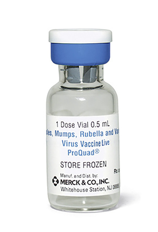 Die einzigen impfstoffbezogenen Nebenwirkungen, die häufiger bei mit ProQuad ® Geimpften auftraten als bei Personen, die mit Varizellen-Lebendimpfstoff und Masern-Mumps-Röteln-Impfstoff geimpft wurden, waren Fieber und ein masernartiger Ausschlag [1]. Die einzige impfstoffbezogene Nebenwirkung, die häufiger bei mit ProQuad ® Geimpften auftrat als bei Personen, die mit Varizellen-Lebendimpfstoff geimpft wurden, war ein Ausschlag an der Injektionsstelle [1]. Klinische Studien haben gezeigt, dass ProQuad ® zeitgleich mit anderen Impfstoffen verabreicht werden kann, jedoch an unterschiedlichen Injektionsstellen [1]. 2