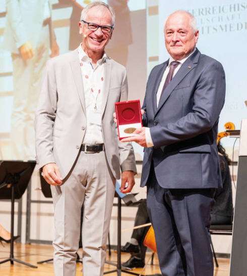 Für sein jahrelanges Engagement an der Klinik für Arbeitsmedizin in Wien in der Ausbildung von Fachärztinnen und Fachärzten, seine jahrzehntelange Vortragstätigkeit an der AAMP und die Mitarbeit in zahlreichen Projekten, die der Weiterentwicklung des Faches dienten, verleihen wir Universitätsprofessor Dr. Christian Wolf die