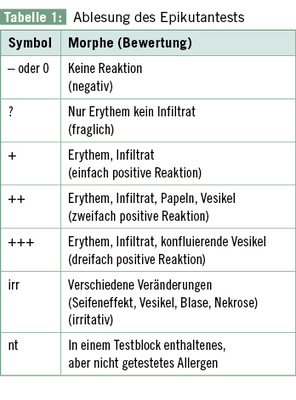 Ein Epikutantest kann nur dann interpretiert werden, wenn die entscheidende 72-h-Ablesung durchgeführt und protokolliert ist. Es muss bei jeder als allergisch eingestuften Reaktion die klinische Relevanz beurteilt werden. Sie ist dann gegeben, wenn die Hauterkrankung durch Kontakt mit dem Allergen hervorgerufen wurde. Ein positiver Epikutantest dient ausschließlich der Abklärung einer Kontaktdermatitis, erlaubt aber keine kausale Verknüpfung mit anderen Symptomen oder Erkrankungen (z. B. Asthma, Rhinitis, Migräne).