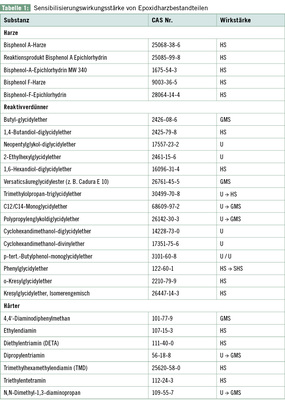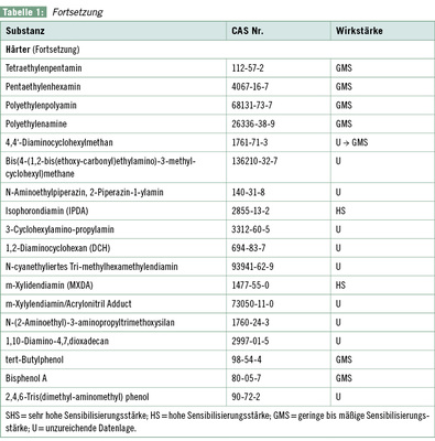 Damit ist eine „kleine Substitution“ mög-lich, es können innerhalb von Epoxidharz-systemen Komponenten verwendet werden, die zwar nicht notwendigerweise ohne Allergiegefährdung sind, die jedoch seltener oder in kleinerem Ausmaß zur Allergie führen.
