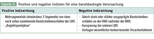 Bei Erfüllung der Grundvoraussetzun-gen ist nach den Empfehlungen der Kon-sensusarbeitsgruppe anhand der in Tabelle 3 angegebenen Positiv- und Negativ-indizien abzuwägen, ob ein Ursachenzusammenhang wahrscheinlich ist: