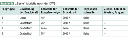 Nach der Erstauswertung der DWS gab es für die 4 Fallgruppen unterschiedliche „beste“ Modelle ( Tabelle 9 ).