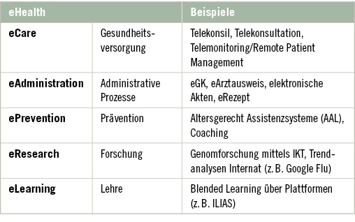 Unter Berücksichtigung der aktuellen Entwicklungen im Themengebiet kann der Begriff eHealth folgendermaßen gegliedert werden: