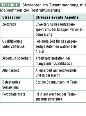 Es wurden verschiedene Stressfaktoren in der Arbeit der Laboranten ermittelt, die im Zusammenhang mit der Restrukturierung zu sehen sind. Tabelle 1 zeigt zentrale Stressoren im Überblick.