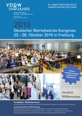 Unter dem Schwerpunktthema „Arbeitsmedizin – gestern, heute, morgen“ beleuchtet der VDBW vom 23.–25. Oktober 2019 im Konzerthaus Freiburg berufspolitische Entwicklungen für Betriebsärzte.