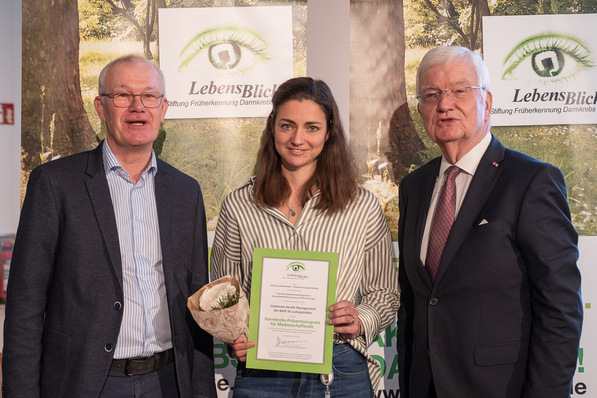 Der diesjährige Medienpreis der Stiftung LebensBlicke, dotiert mit 2.000 € und gestiftet von CARE Diagnostica (Voerde), würdigt hervorragende Berichterstattung oder – wie in diesem Jahr – betriebliche Initiativen zur Darmkrebsvorsorge. Ausgezeichnet wurde das Projekt "Darmkrebspräventionsprogramm – Gesundheitsförderung durch frühe Vorsorge" der Abteilung Corporate Health Management der BASF SE Ludwigshafen.