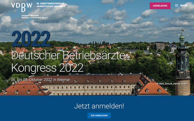 Die 38. Arbeitsmedizinische Jahrestagung des Verbandes Deutscher Betriebs- und Werksärzte e. V. findet vom 5. bis 8. Oktober 2022 in Weimar statt.