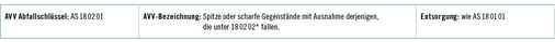Hinweis: Die Abfallbehältnisse können ge-gebenenfalls über den Hausmüll des Pflege-kunden entsorgt werden. Siehe auch Anhang 8 – Abfallschlüssel 18 01 01.