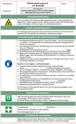 - Neues Beispiel einer Betriebsanweisung („Seniorenheim – Inkontinenzversorgung“)