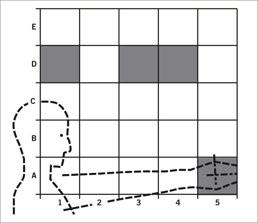 Ziel der Studie ist Klärung der Frage bezüglich der Haltezeiten und der muskulären Beanspruchung bei statischer Überkopfarbeit in definierten Hand-Arm-Positionen mit und ohne passives Exoskelett (C). Die statische Aufgabe ist, ein Gewicht von 3,35 kg in vier verschiedenen Haltepositionen (A5, D1, D3 und D4) des Armes mit und ohne Exoskelett solange wie möglich zu halten. Das Gewicht von 3,35 kg wurde in Anlehnung an den Studien von Bier (1991) festgelegt. Die Positionen werden anhand des größten Anwendungsbezugs zu realen Haltepositionen an den industriellen Arbeitsplätzen und Studien von Bier (1991) gewählt. In ➥ Abb. 2 ist ein Raster der festgelegten Positionen aufgetragen. Die Position A5 repräsentiert das Arbeiten beziehungsweise Halten eines Gegenstands oder Werkzeugs mit einer maximalen Reichweite des Handarmes. D1 geht von einem Anwendungsfall direkt unter dem zu bearbeitenden Werkstück aus, D3 und D4 hingegen von Überkopfarbeiten mit einem weiten Abstand zum Objekt. An der Studie nahmen insgesamt 23 junge Testpersonen (16 Männer und 7 Frauen) teil. Der Altersdurchschnitt liegt bei 23,0 ± 1,2 Jahren. Das Durchschnittsgewicht der Probanden liegt bei 73,5 ± 12,2 kg, die Durchschnittsgröße bei 180,5 ± 11,3 cm.