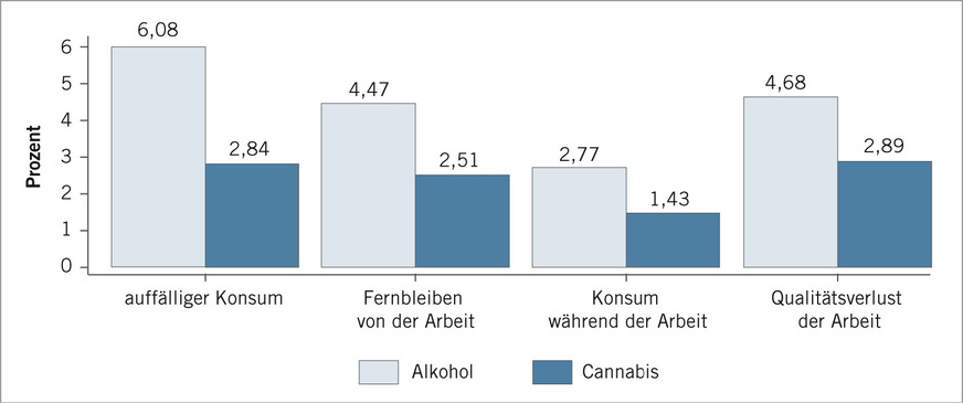 Table 3: Comparison of the estimated relevance of alcohol and cannabis use in the workplace