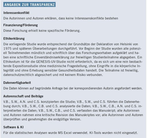 Angaben zu möglichen Interessenskonflikten, zur Finanzierung der Studie, zur Datenverfügbarkeit sowie zur Software- und KI-Verwendung finden Sie auf unserer ASU-Homepage direkt im Anschluss an diesen Artikel, ebenso die Erklärungen dazu, dass diese Forschung nach ethischen Grundsätzen durchgeführt wurde und welche Autorinnen und Autoren an welchen Teilen der Studie mitgewirkt haben.