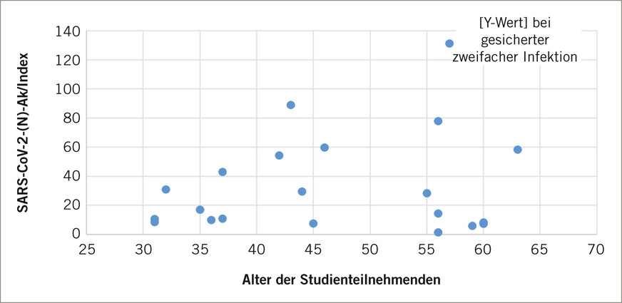 In Bezug auf die Altersverteilung wurden hinsichtlich der relativen anti-Nucleocapsidprotein-Antikörperkonzentrationen keine eindeutigen Unterschiede ersichtlich (➥ Abb. 2).