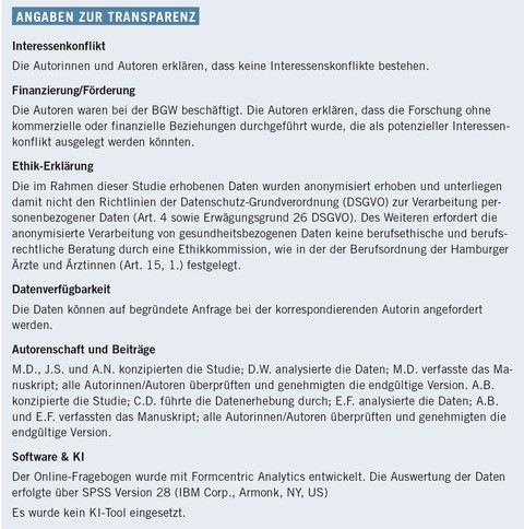 Angaben zu Autorenschaften: Autorin MD war verantwortlich für das Konzept der Publikation, den ersten Entwurf und die Interpretation der Daten. Autorin JS war beteiligt an der Interpretation der Daten und der Revision des Manuskripts. Autorin DW war verantwortlich für die statistische Auswertung. Autor AN war beteiligt an der Revision des Manuskripts.