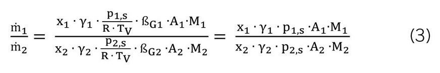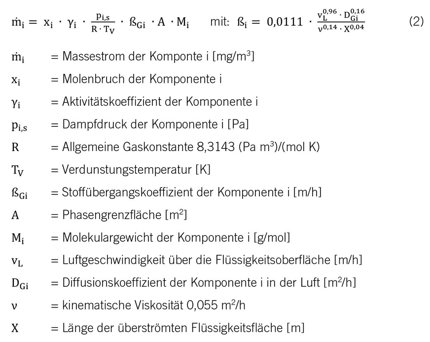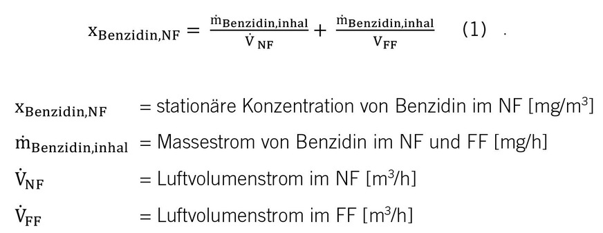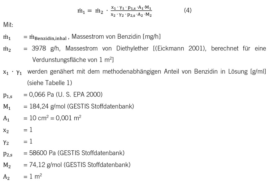 Die Berechnung des Massestroms (Gleichung 2) beim Umgang mit Benzidin-Lösung erfolgt nach dem Modell von Weidlich und Gmehling (Eickmann 2008) und dem Vergleich zweier Komponenten (Eickmann 2001).