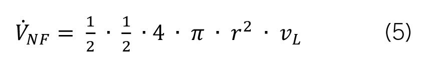 Der Luftvolumenstrom im NF V. NF wird mittels Gleichung 5 zu 282,74 m3/h bestimmt. Die Form des NF-Bilanzraums entspricht einer Halbkugel mit der Stoffquelle in der Mitte und dem Einatembereich des Beschäftigten in der Kugelhülle. Der Radius der Halbkugel wird mit r = 0,5 m und die Luftgeschwindigkeit mit vL= 0,1 m/s angenommen.