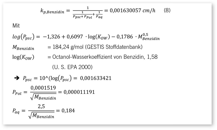 Die Berechnung des Hautpermeationskoeffizienten für Benzidin erfolgt nach dem durch Wilschut et al. überarbeiteten und empfohlenen Modell von Robinson (Gleichung 8) (Wilschut et al. 1995).