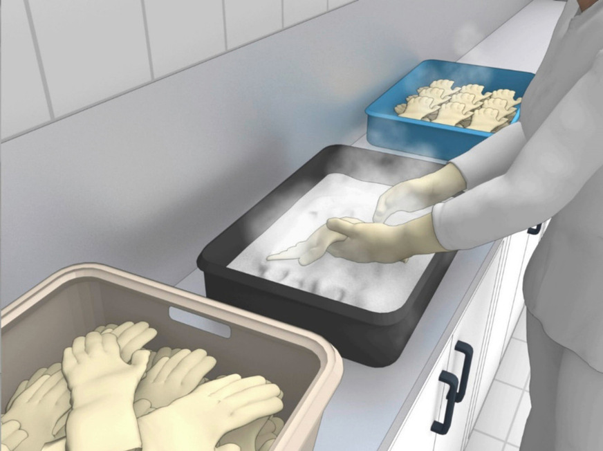 Fig. 1: Powdering gloves for reuse in a wash/powder room