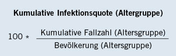 Die kumulative Infektionsquote (bis einschließlich 17. KW 2021) in Prozent errechnet sich nach folgender Formel:
