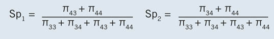 Es gilt zu beachten, dass der Nenner zur Errechnung der Sensitivität alle Testpersonen zusammenfasst, die laut dem Goldstandard bestanden haben (Lachenbruch u. Lynch 1998). Im Gegensatz dazu findet man im Nenner der Spezifität den Anteil aller Testpersonen, die nicht bestanden haben, bezogen auf den Goldstandard.