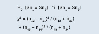 Weil der χ2-Wert 5 beträgt und damit nicht größer als χ22 ;0,05 = 5,991 ist, darf die Nullhypothese nicht abgelehnt werden. Dies bedeutet, dass kein signifikanter Unterschied zwischen der Sensitivität und Spezifität der beiden Testmethoden besteht.